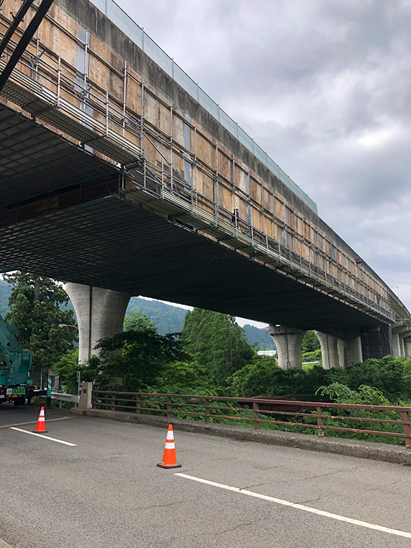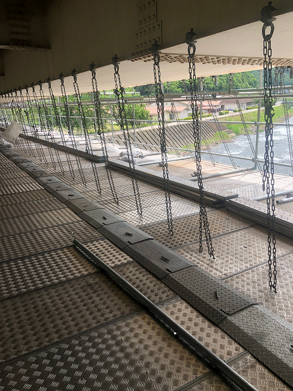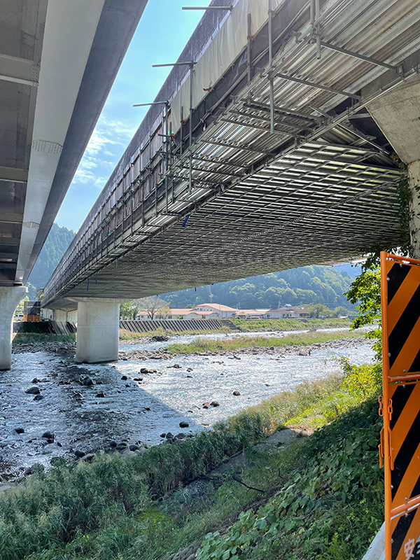 【岐阜県下呂市】吊り足場・クサビ足場・板張り防護・ブラスト用足場